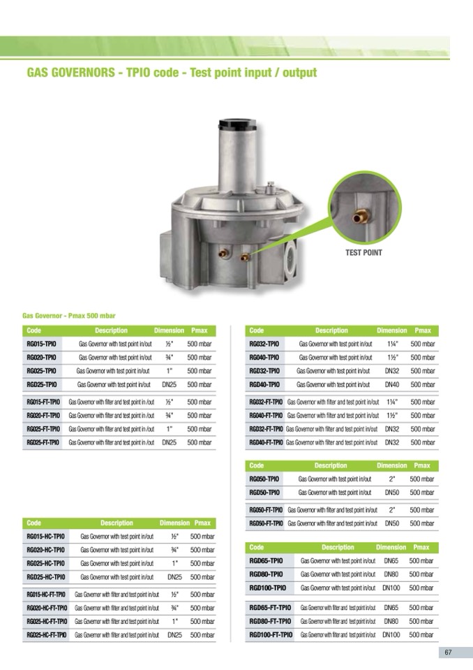 Gas Governor with filter and test point in /out