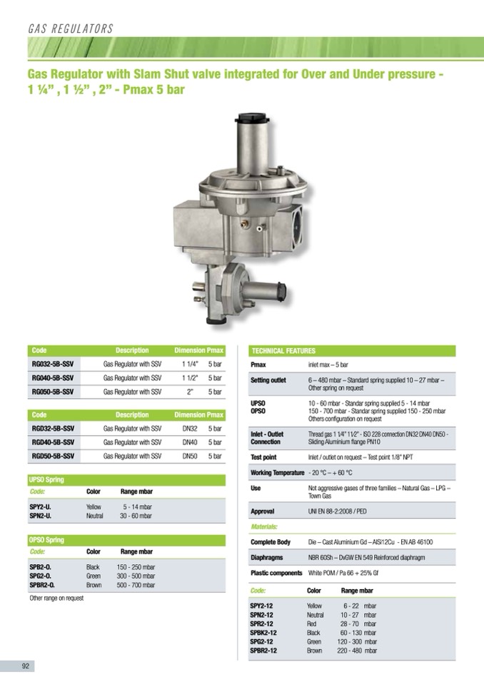 6 – 480 mbar – Standard spring supplied 10 – 27 mbar –