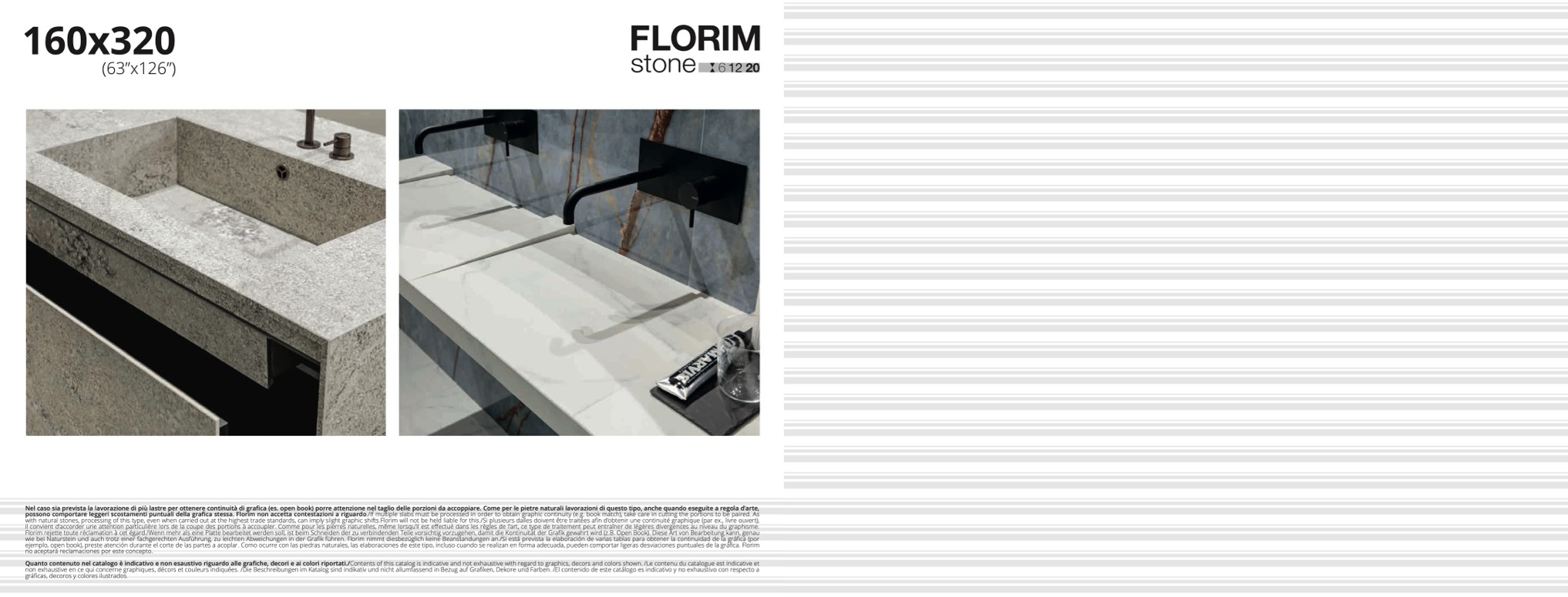 tural stones, processing of this type, even when carried out at the highest trade standards, can imply slight graphic shifts.Florim will not be held liable for this./Si plusieurs dalles doivent être traitées afin d’obtenir une continuité graphique (par ex., livre ouvert)