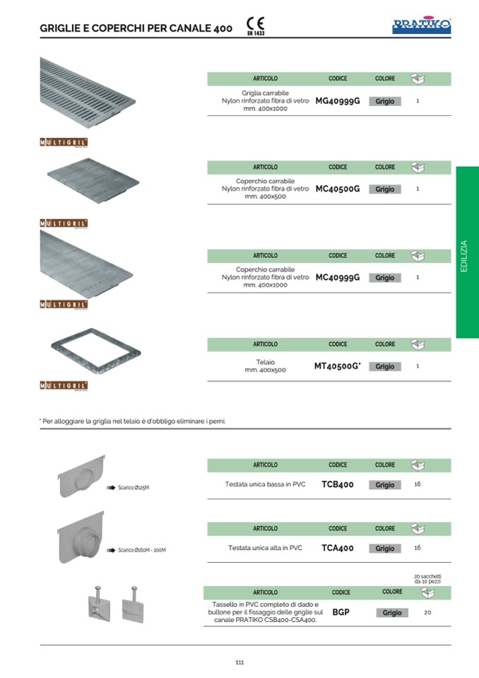 * Per alloggiare la griglia nel telaio è d’obbligo eliminare i perni.