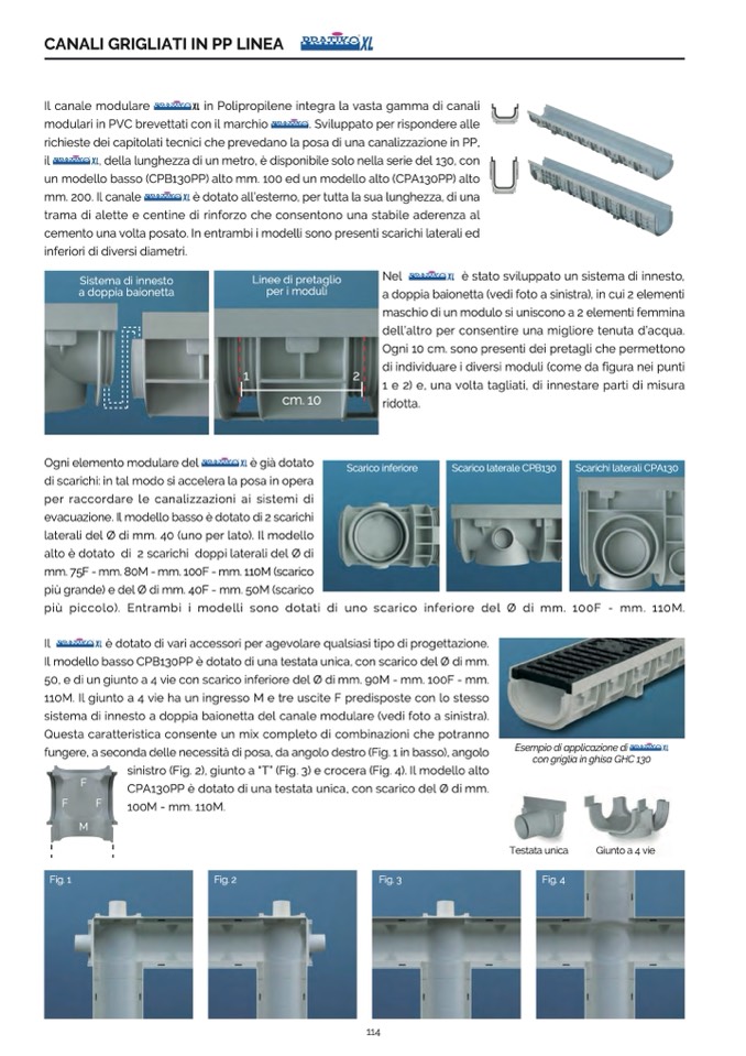 in Polipropilene integra la vasta gamma di canali