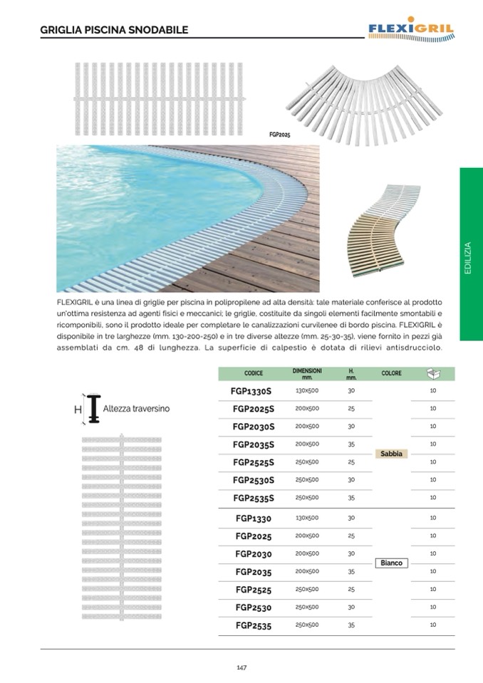 ricomponibili, sono il prodotto ideale per completare le canalizzazioni curvilenee di bordo piscina. FLEXIGRIL è