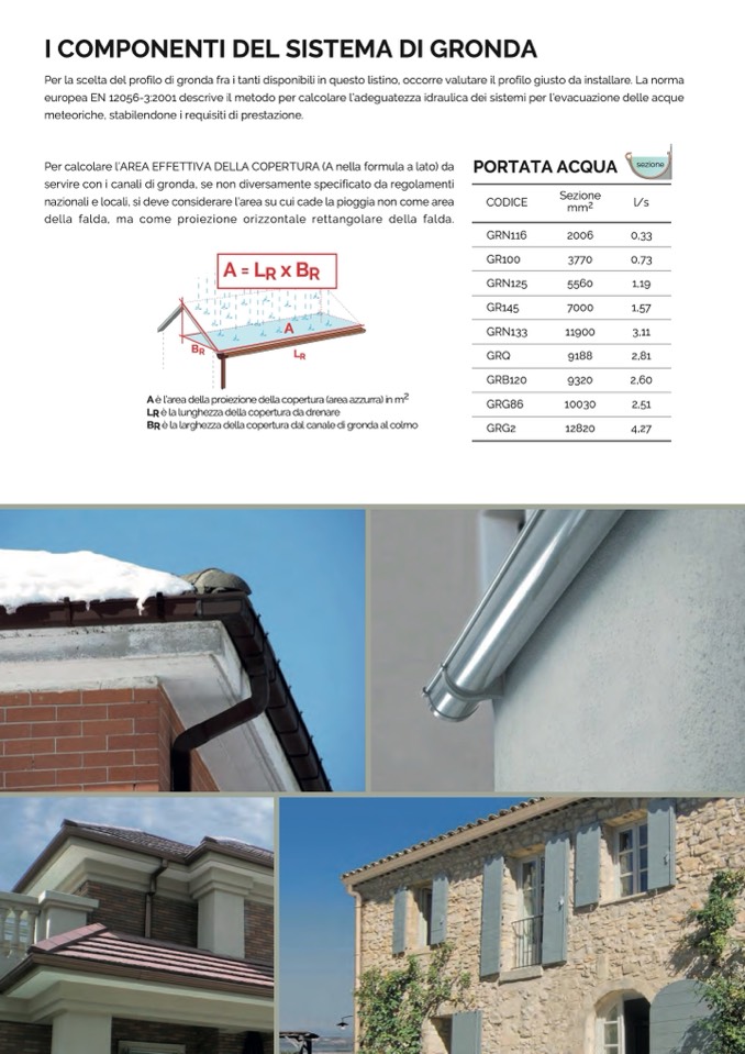 Per la scelta del profilo di gronda fra i tanti disponibili in questo listino, occorre valutare il profilo giusto da installare. La norma
