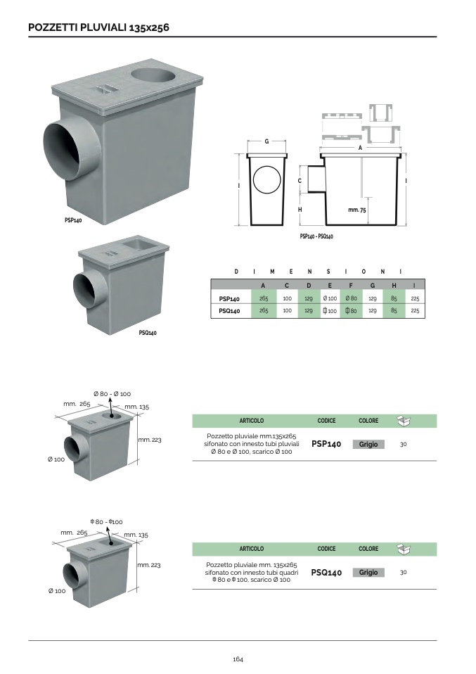 Pozzetto pluviale mm.135x265