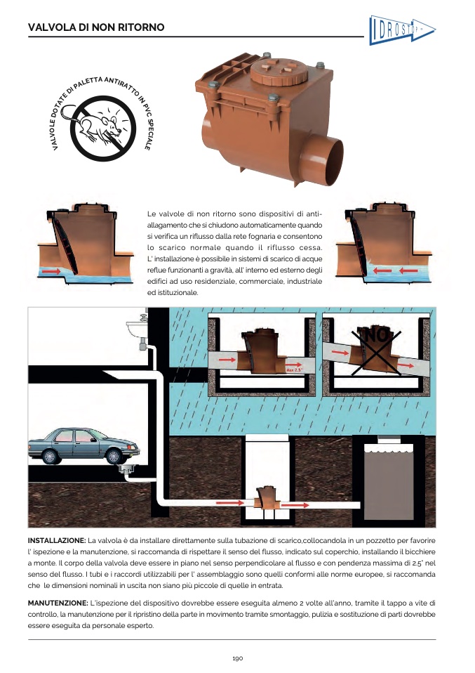 INSTALLAZIONE: La valvola è da installare direttamente sulla tubazione di scarico,collocandola in un pozzetto per favorire