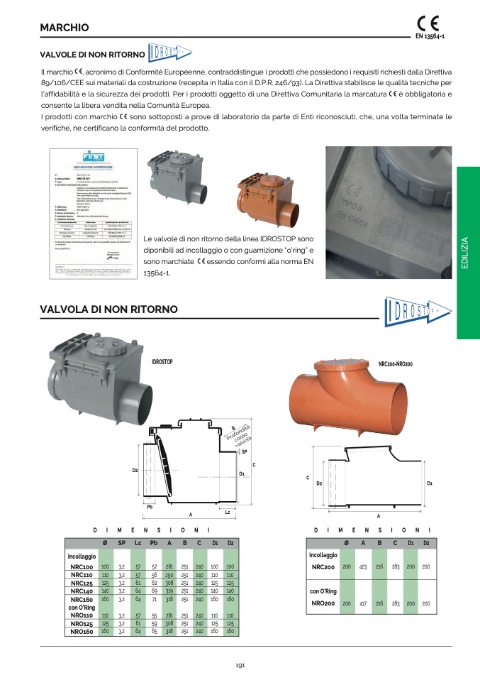 diponibili ad incollaggio o con guarnizione “o’ring” e