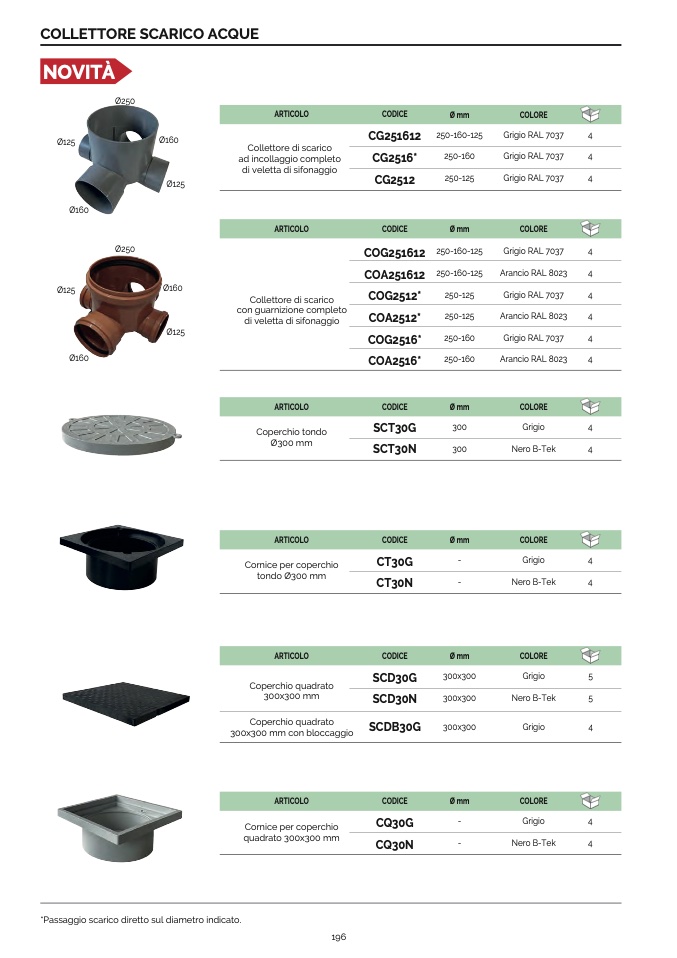 *Passaggio scarico diretto sul diametro indicato.