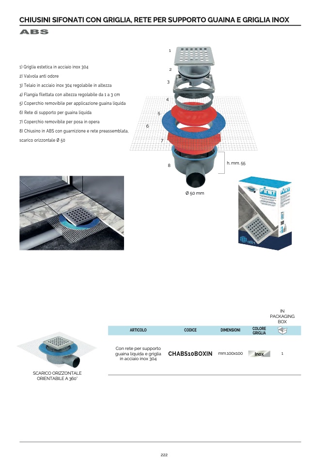 8) Chiusino in ABS con guarnizione e rete preassemblata,
