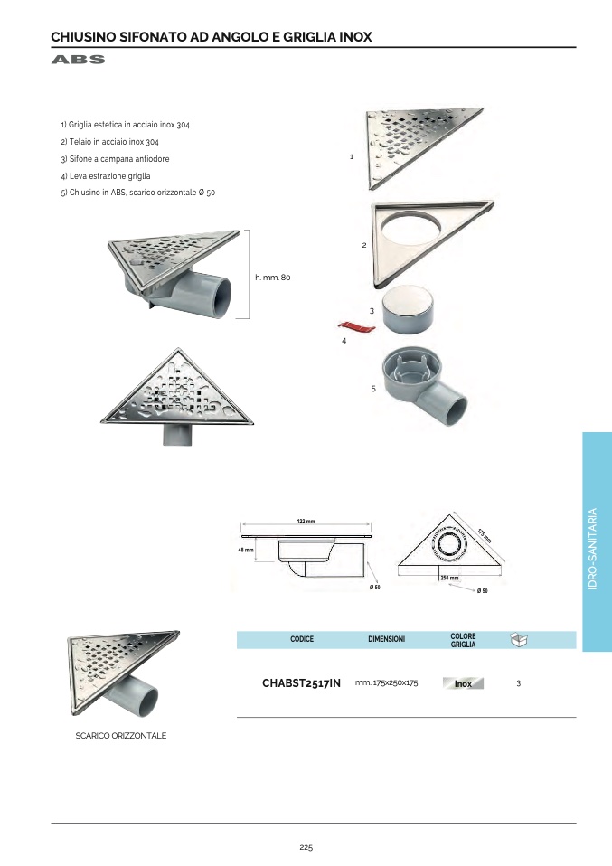 5) Chiusino in ABS, scarico orizzontale Ø 50