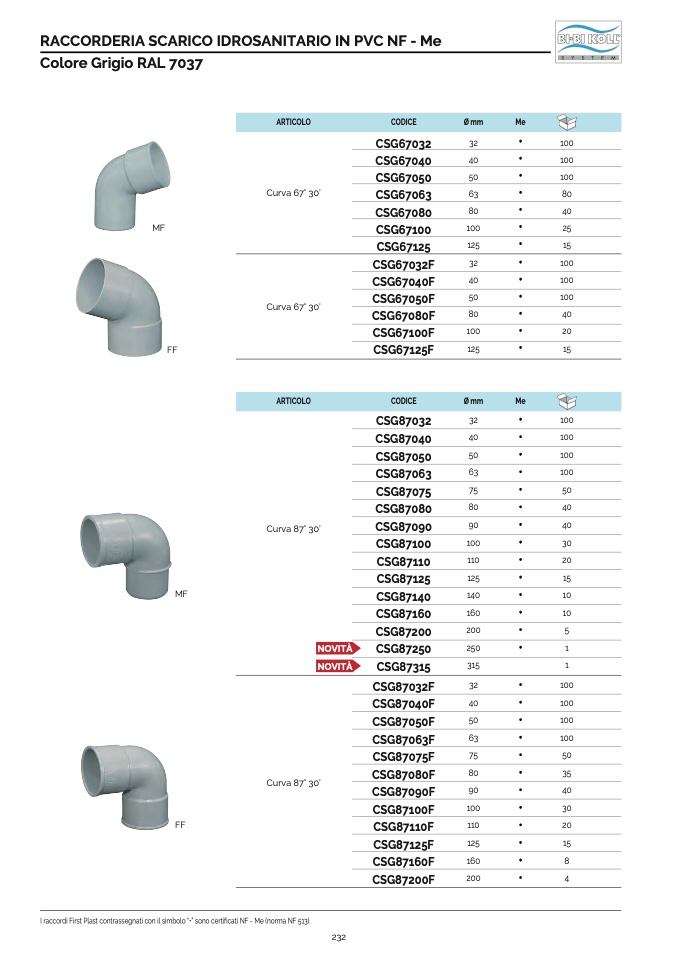 I raccordi First Plast contrassegnati con il simbolo “•” sono certificati NF - Me (norma NF 513).