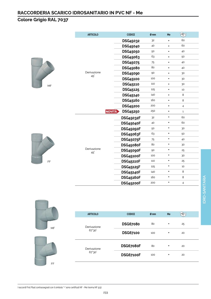 I raccordi First Plast contrassegnati con il simbolo “•” sono certificati NF - Me (norma NF 513).