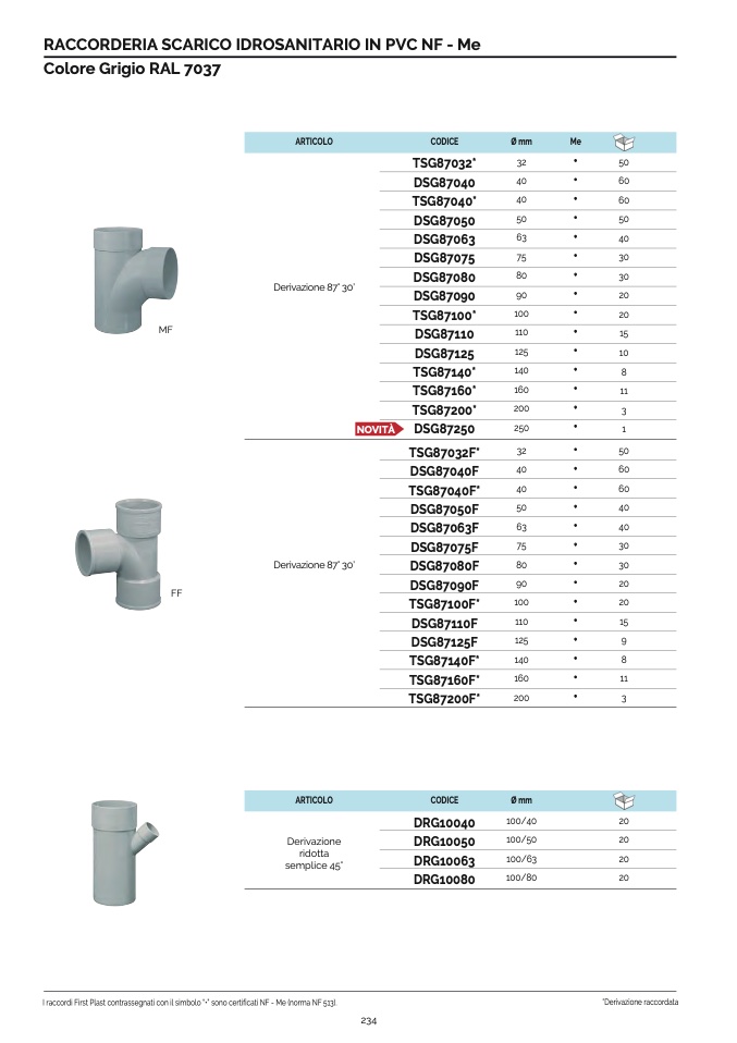 I raccordi First Plast contrassegnati con il simbolo “•” sono certificati NF - Me (norma NF 513).