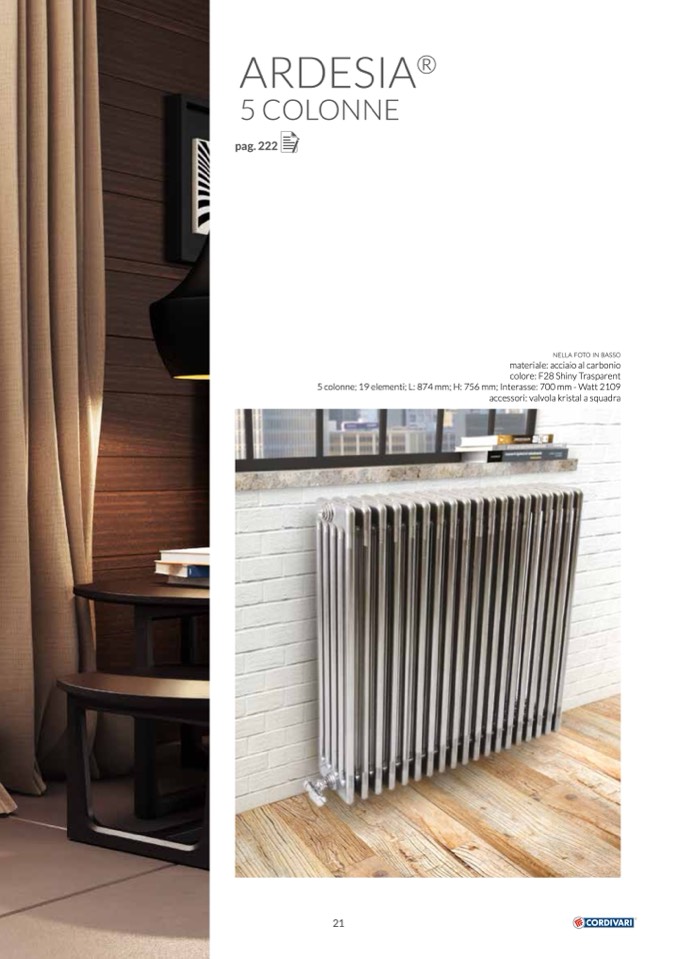 5 colonne; 19 elementi; L: 874 mm; H: 756 mm; Interasse: 700 mm - Watt 2109