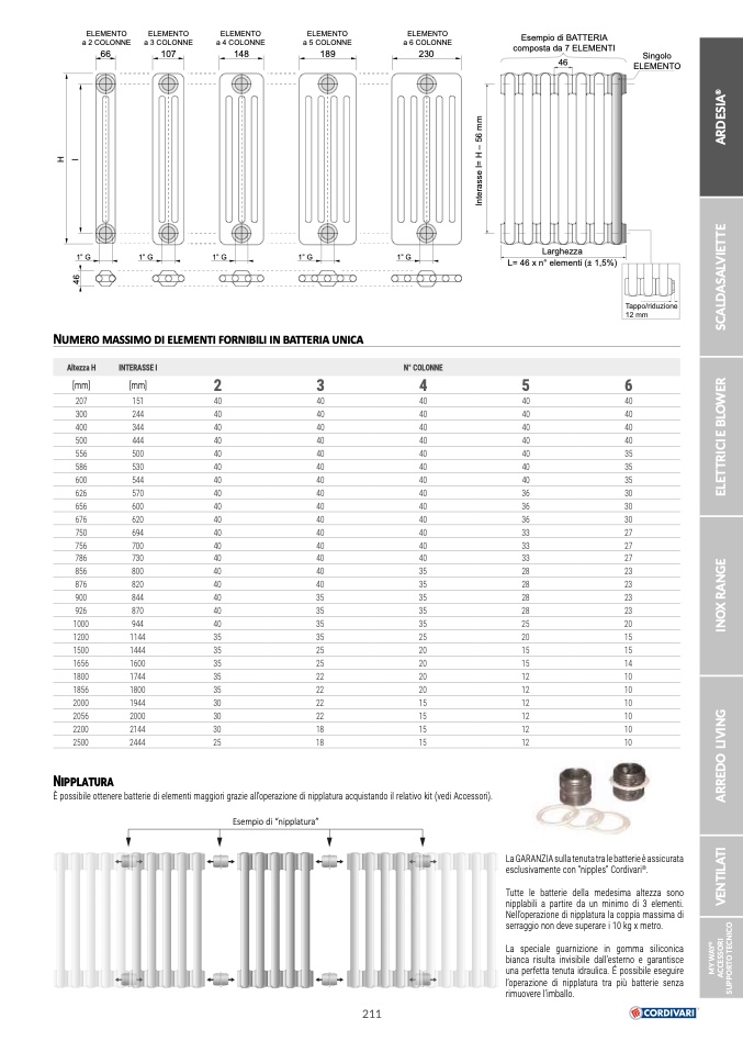 È possibile ottenere batterie di elementi maggiori grazie all’operazione di nipplatura acquistando il relativo kit (vedi Accessori).