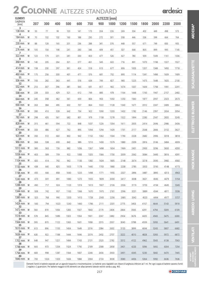 Elementi forniti in batterie separate per un agevole trasporto e movimentazione. Le batterie sono nipplabili con chiave di lunghezza inferiore ad 1 mt. Per ogni coppia di batterie saranno forniti