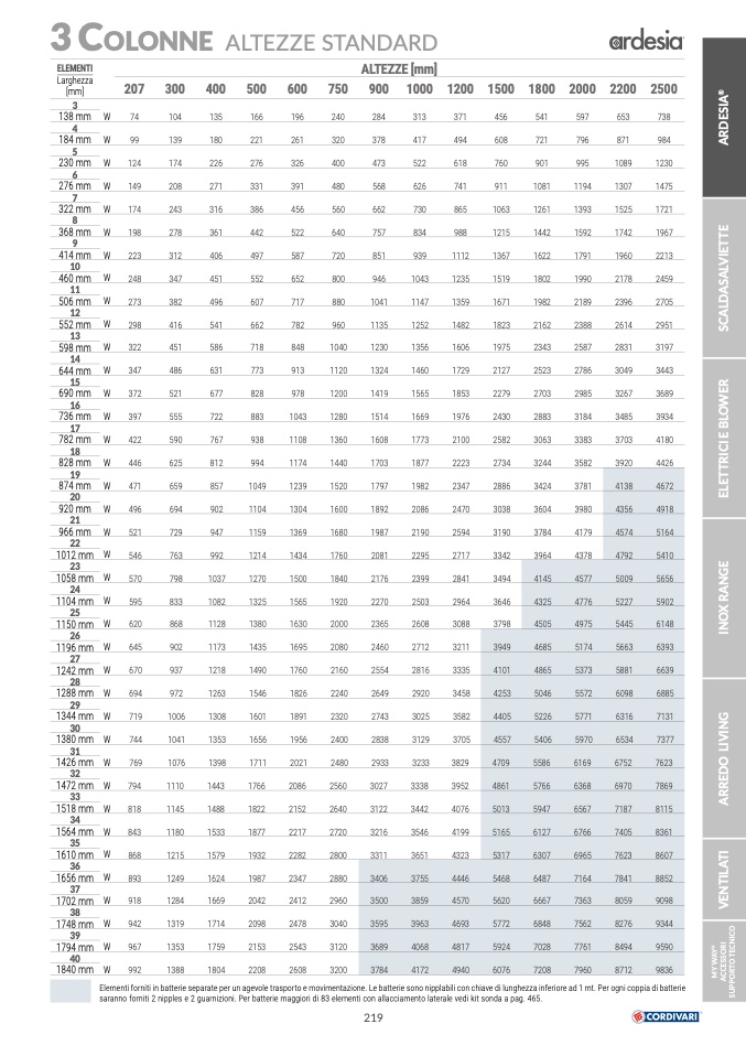 Elementi forniti in batterie separate per un agevole trasporto e movimentazione. Le batterie sono nipplabili con chiave di lunghezza inferiore ad 1 mt. Per ogni coppia di batterie