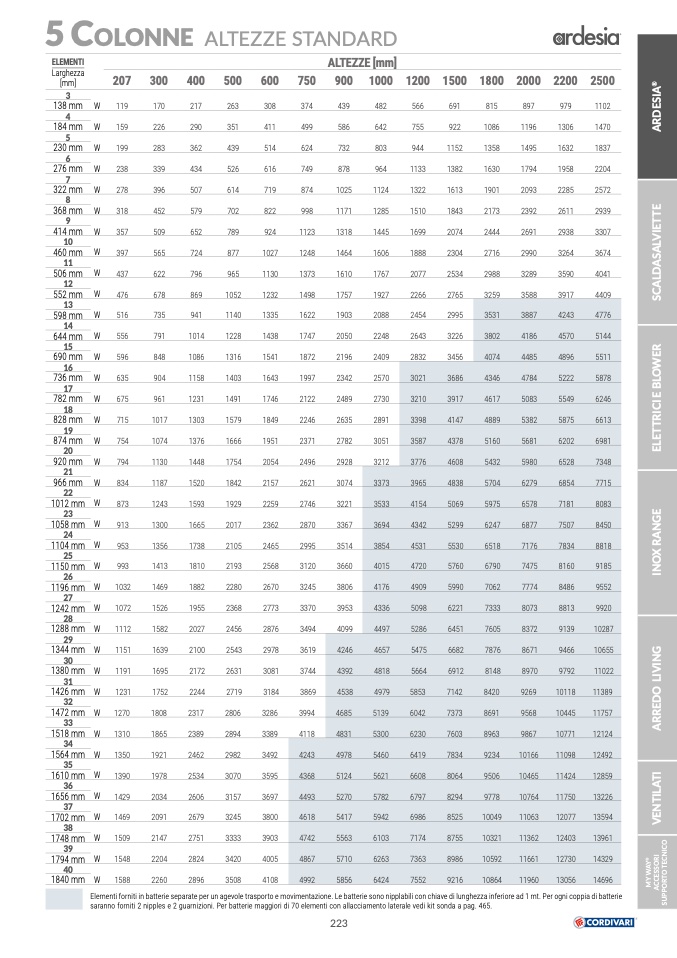 Elementi forniti in batterie separate per un agevole trasporto e movimentazione. Le batterie sono nipplabili con chiave di lunghezza inferiore ad 1 mt. Per ogni coppia di batterie