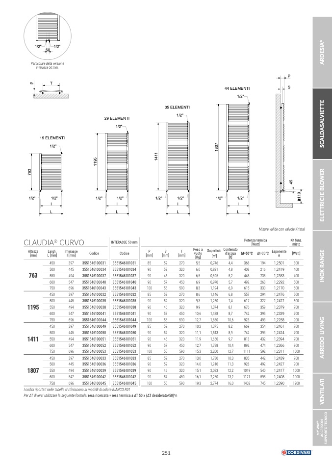 Per ΔT diversi utilizzare la seguente formula: resa ricercata = resa termica a ΔT 50 x (ΔT desiderato/50)^n