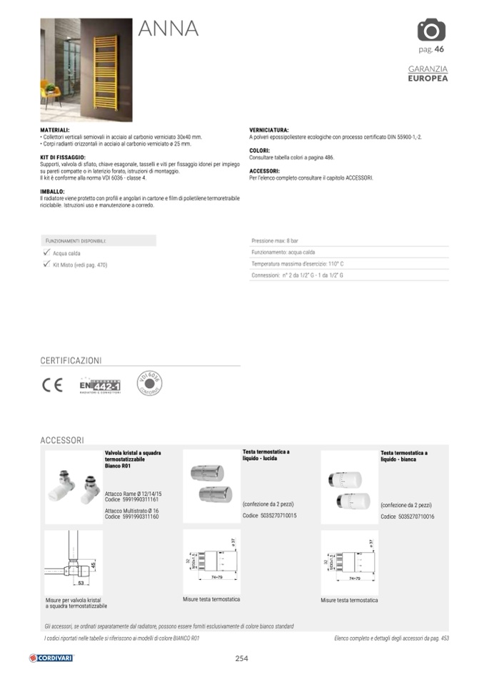 Gli accessori, se ordinati separatamente dal radiatore, possono essere forniti esclusivamente di colore bianco standard