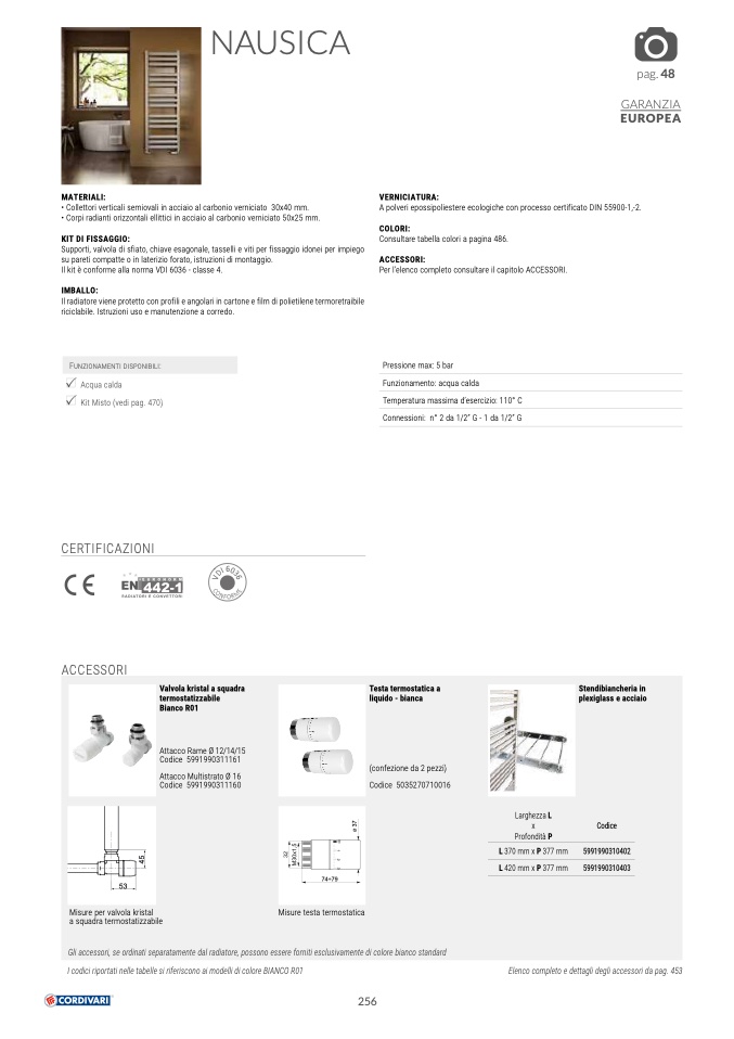 Gli accessori, se ordinati separatamente dal radiatore, possono essere forniti esclusivamente di colore bianco standard