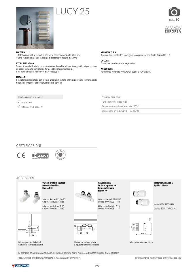 Gli accessori, se ordinati separatamente dal radiatore, possono essere forniti esclusivamente di colore bianco standard