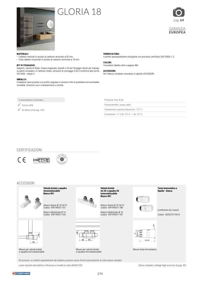 Gli accessori, se ordinati separatamente dal radiatore, possono essere forniti esclusivamente di colore bianco standard