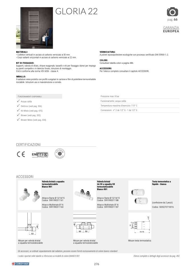 Gli accessori, se ordinati separatamente dal radiatore, possono essere forniti esclusivamente di colore bianco standard