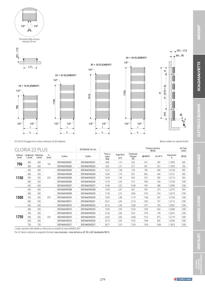 Per ΔT diversi utilizzare la seguente formula: resa ricercata = resa termica a ΔT 50 x (ΔT desiderato/50)^n