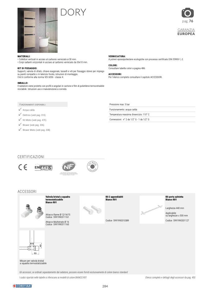Gli accessori, se ordinati separatamente dal radiatore, possono essere forniti esclusivamente di colore bianco standard