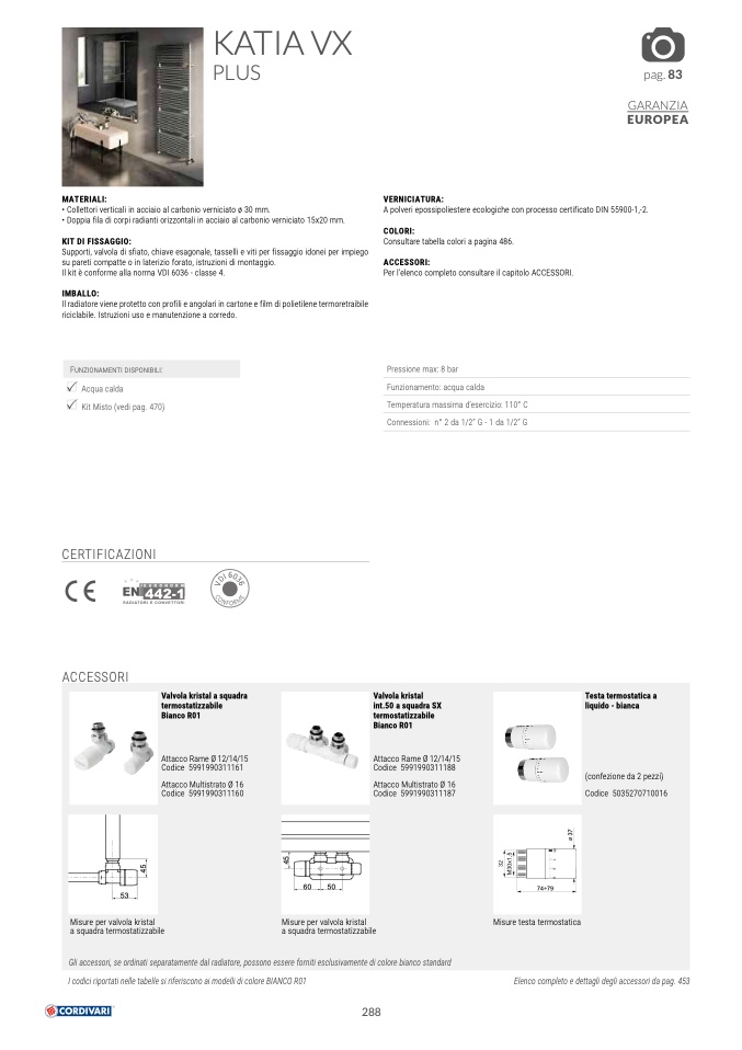 Gli accessori, se ordinati separatamente dal radiatore, possono essere forniti esclusivamente di colore bianco standard