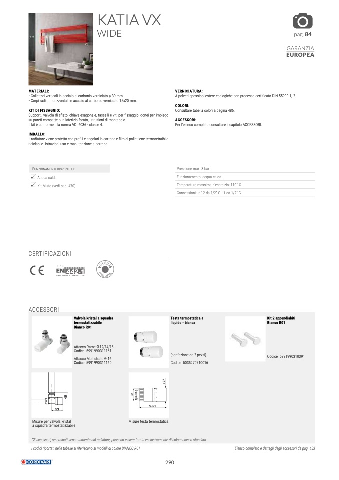 Gli accessori, se ordinati separatamente dal radiatore, possono essere forniti esclusivamente di colore bianco standard