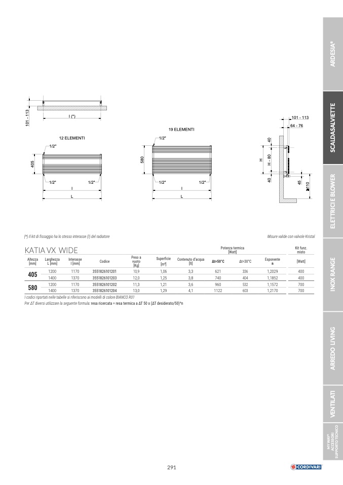 (*) Il kit di fissaggio ha lo stesso interasse (I) del radiatore