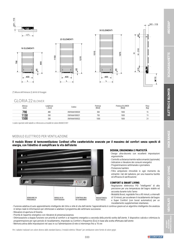 Per i radiatori realizzati con colore diverso dallo standard bianco, il modulo elettrico "Blower" per ventilazione viene fornito di colore grigio