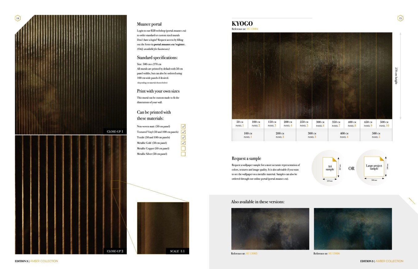 to see the wallpaper on a metallic material. Samples can also be