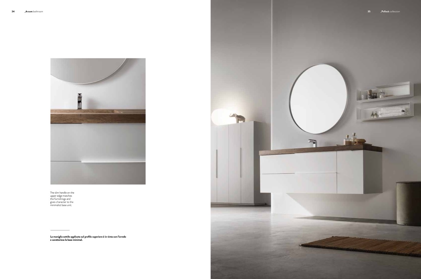 La maniglia sottile applicata sul profilo superiore è in tinta con l’arredo