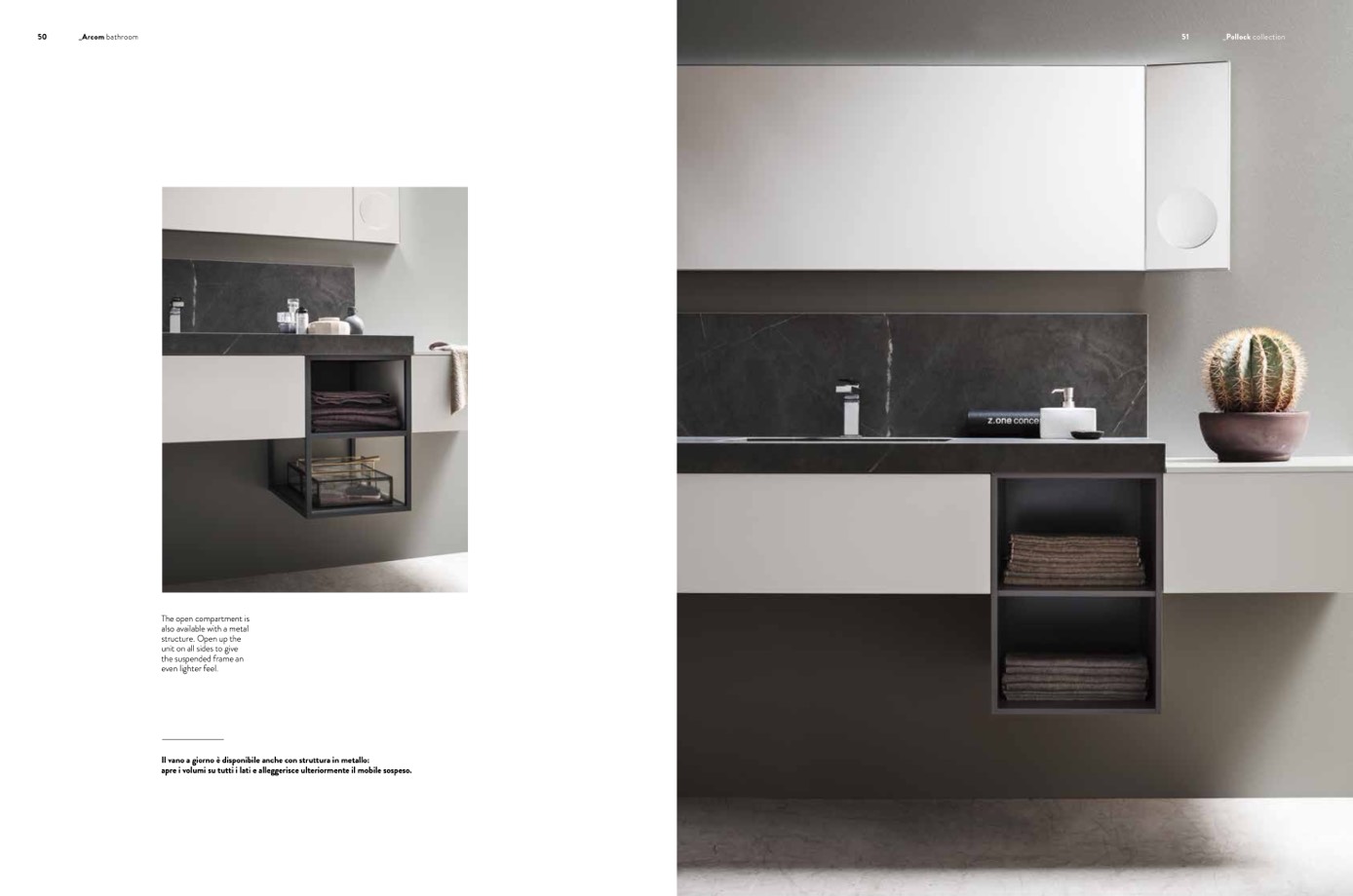 apre i volumi su tutti i lati e alleggerisce ulteriormente il mobile sospeso.
