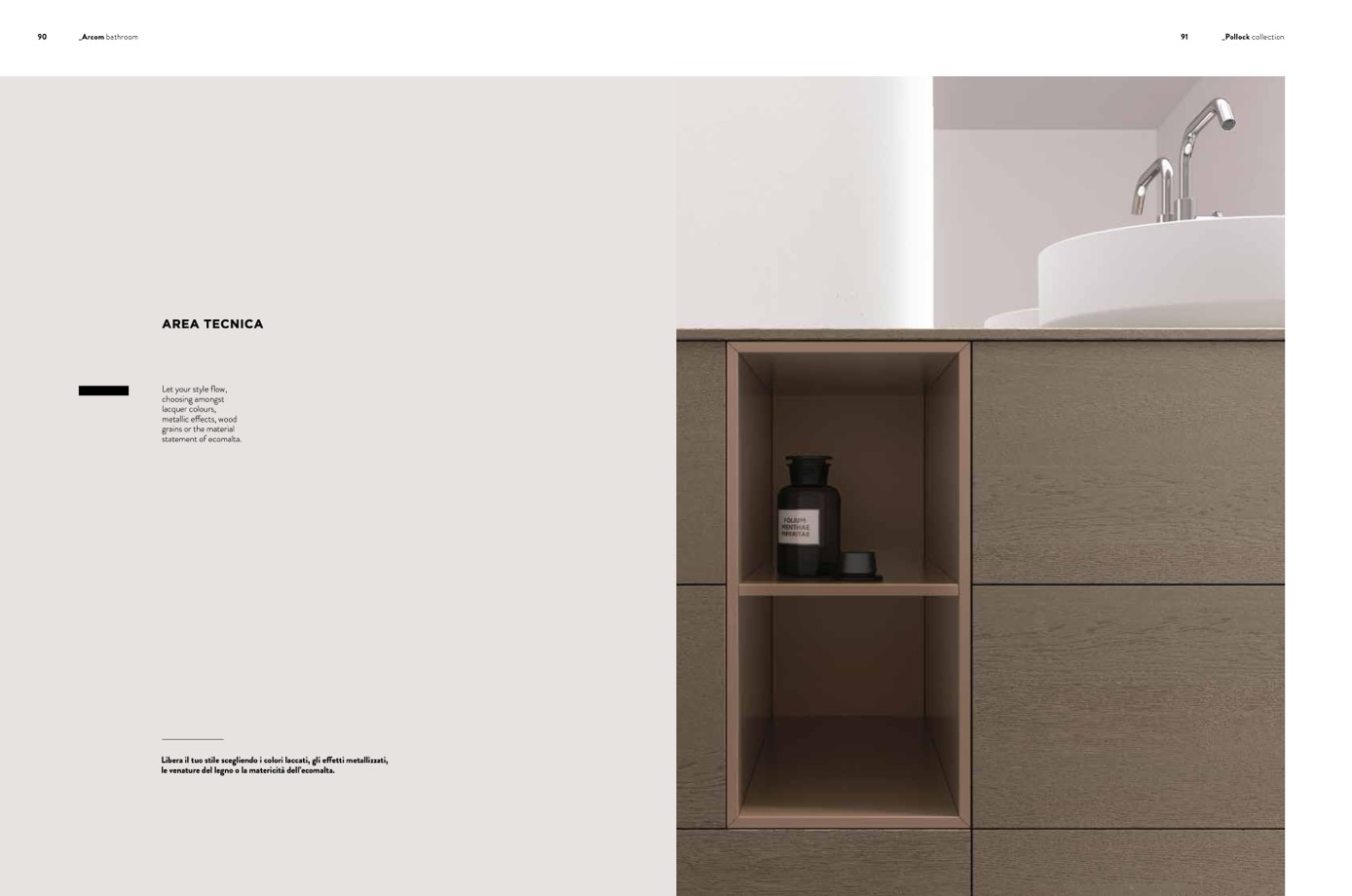 le venature del legno o la matericità dell’ecomalta.
