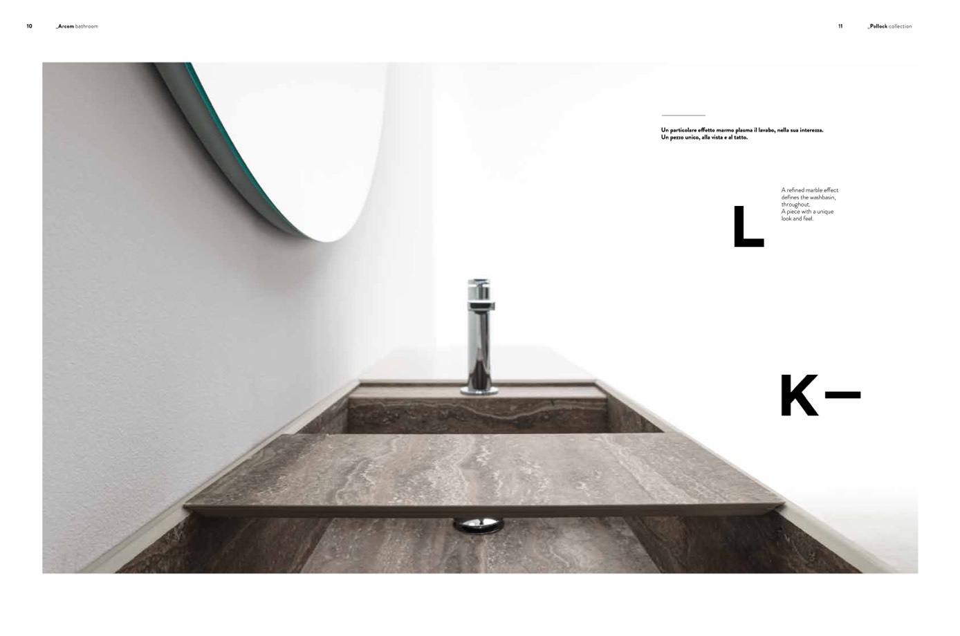 Un particolare effetto marmo plasma il lavabo, nella sua interezza.