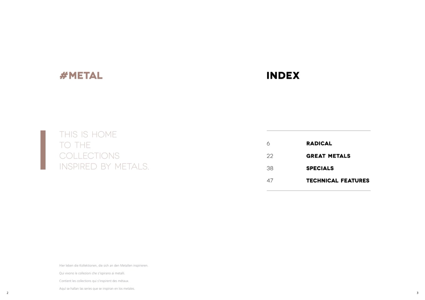 Qui vivono le collezioni che s’ispirano ai metalli.