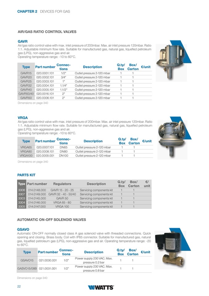 AIR/GAS RATIO CONTROL VALVES