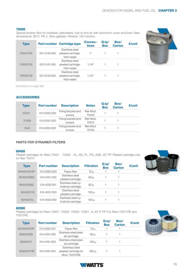 temperature: 90°C. PN 2. Viton gaskets. Filtration 100 microns.