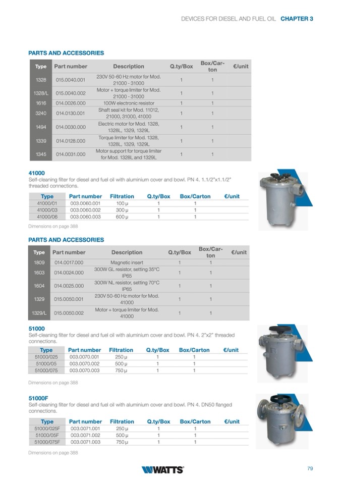 Self-cleaning filter for diesel and fuel oil with aluminium cover and bowl. PN 4. 1.1/2”x1.1/2”