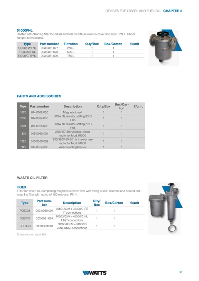 Heated self-cleaning filter for diesel and fuel oil with aluminium cover and bowl. PN 4. DN50