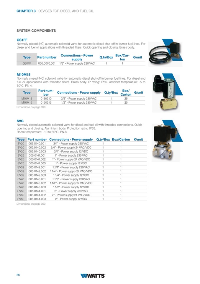 Normally closed (NC) solenoid valve for automatic diesel shut-off in burner fuel lines. For diesel and