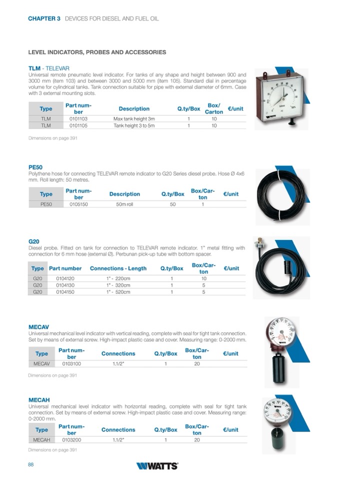 LEVEL INDICATORS, PROBES AND ACCESSORIES