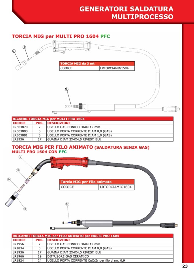 RICAMBI TORCIA MIG per MULTI PRO 1604
