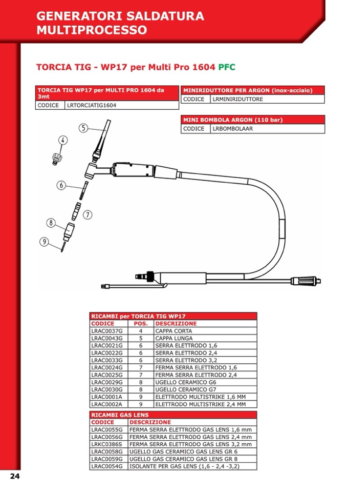 TORCIA TIG WP17 per MULTI PRO 1604 da