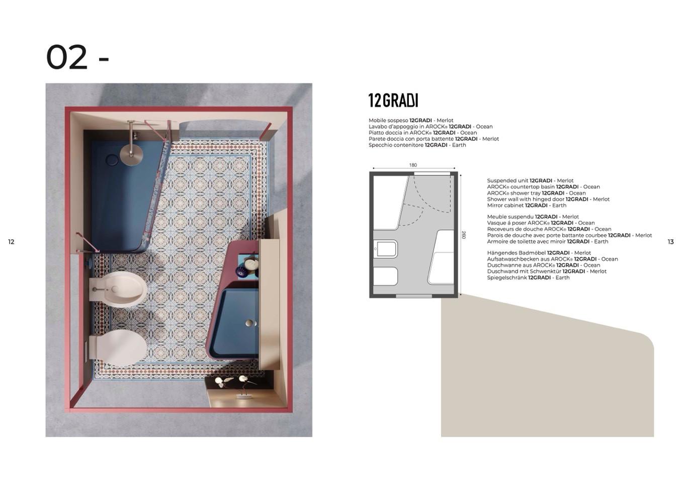 Parois de douche avec porte battante courbee 12GRADI - Merlot