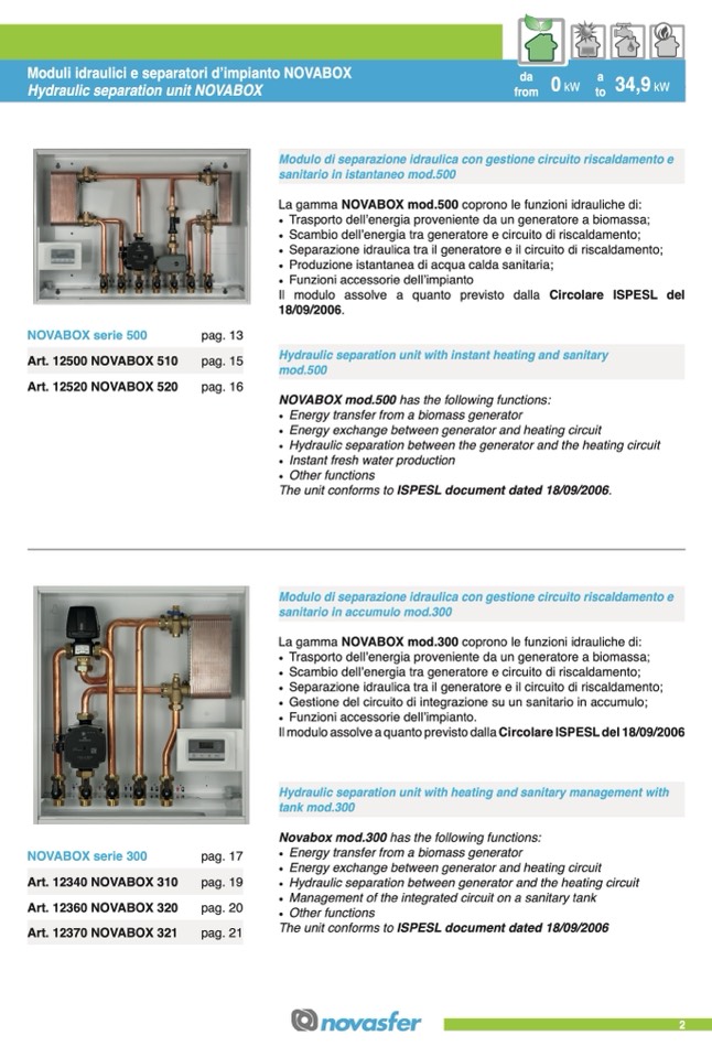 La gamma NOVABOX mod.500 coprono le funzioni idrauliche di: