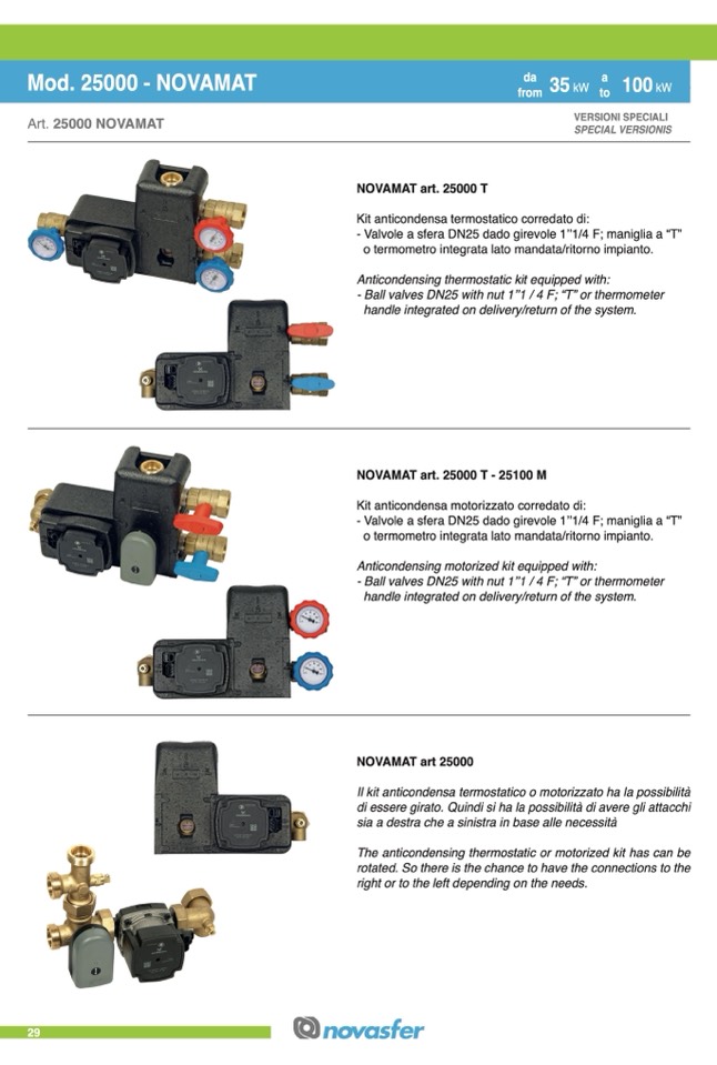 - Ball valves DN25 with nut 1’’1 / 4 F; “T” or thermometer